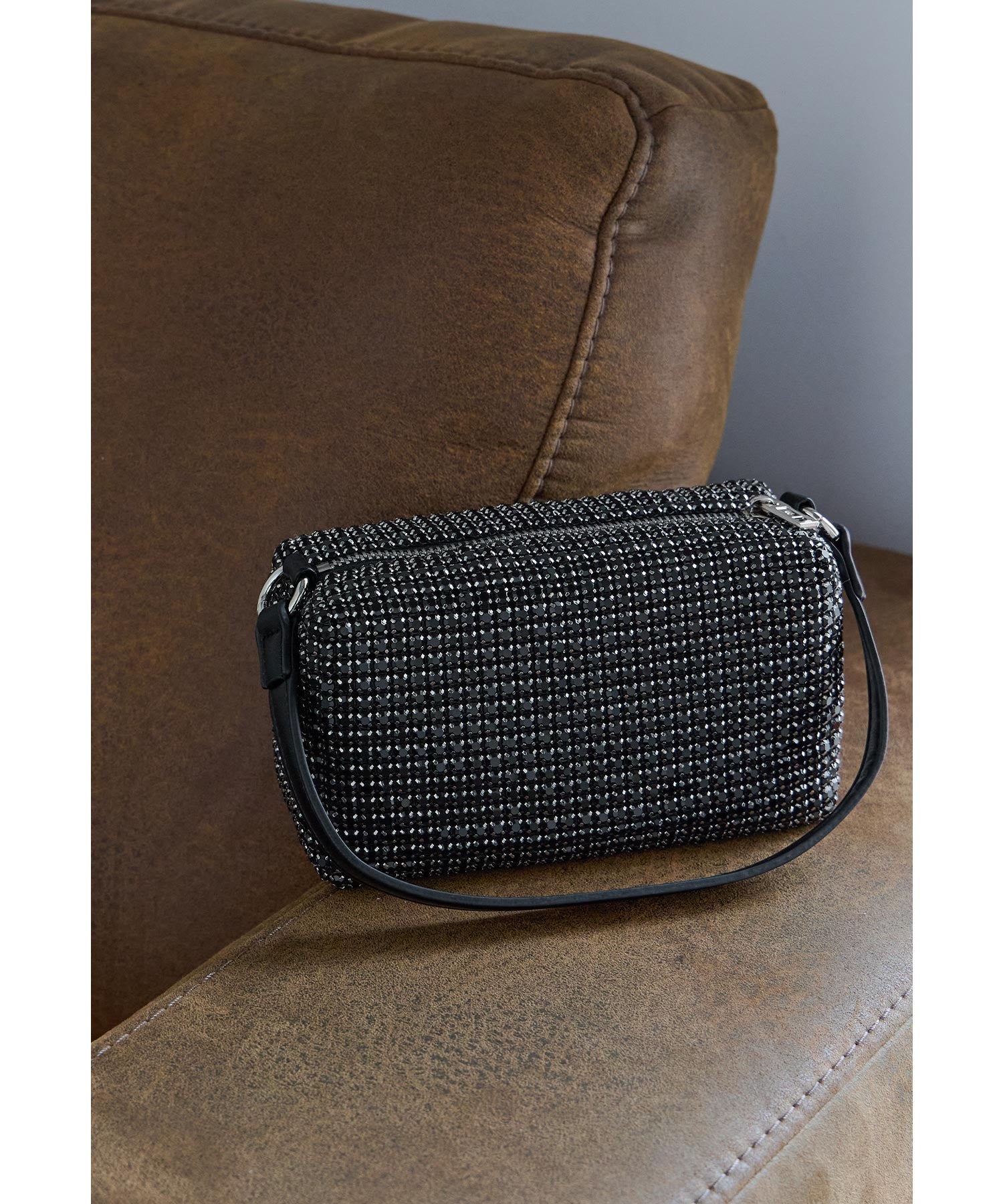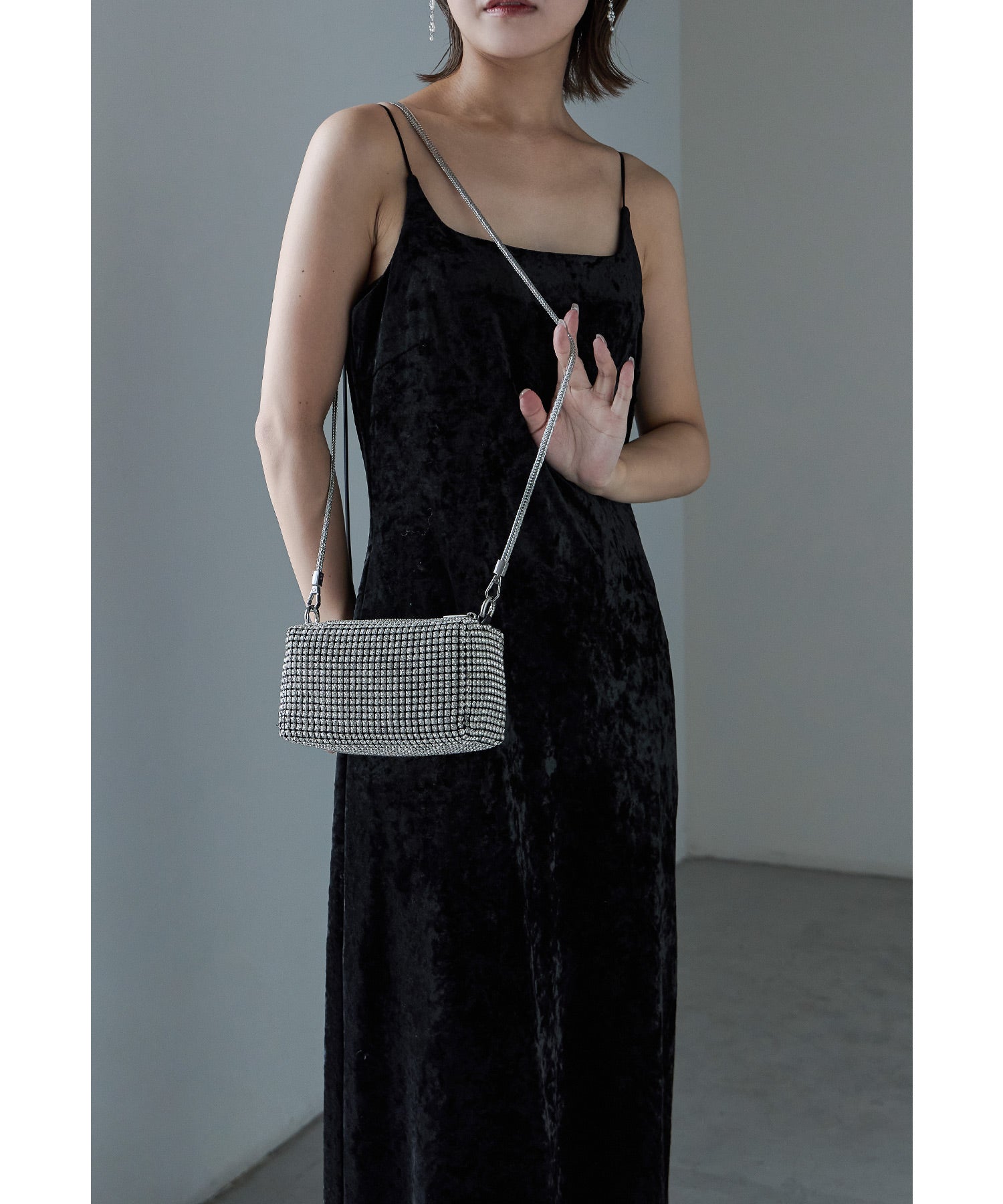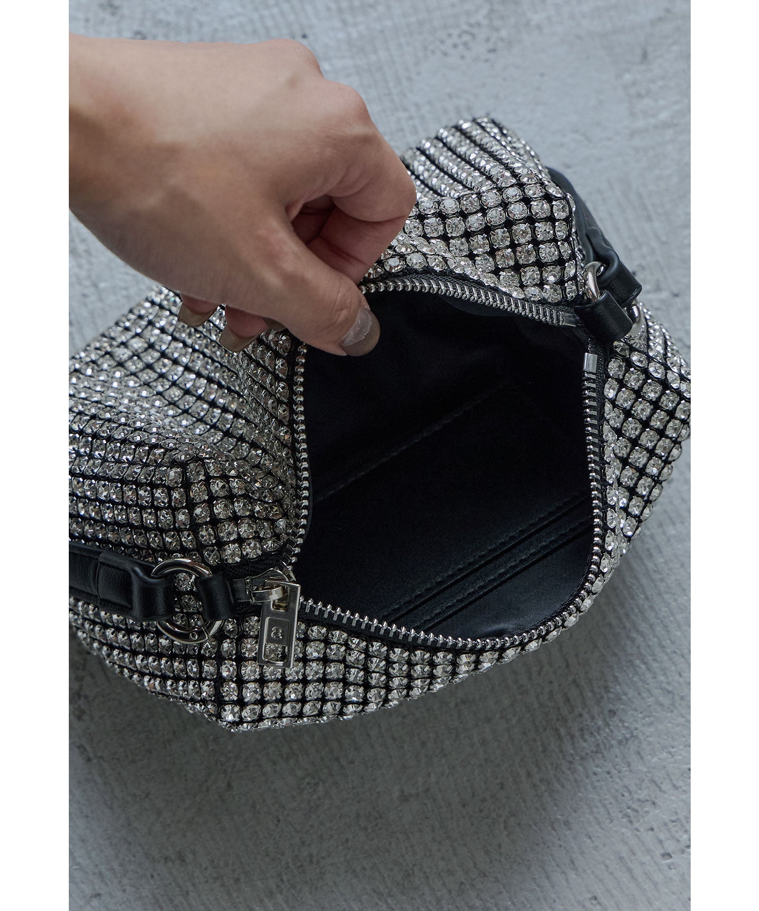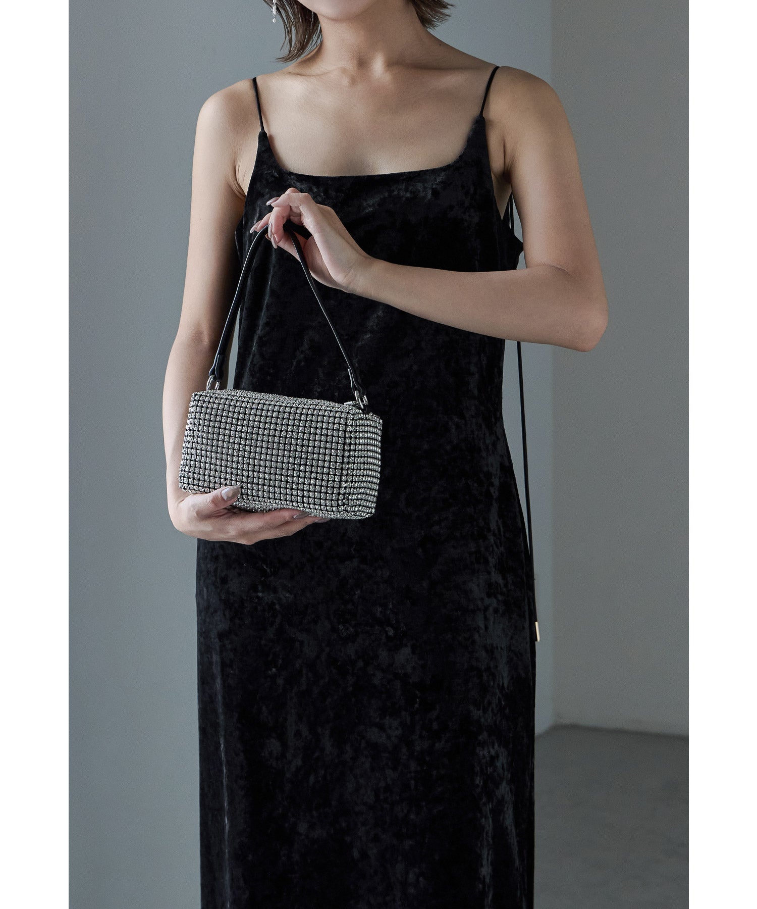 全体に施されたラインストーンが煌めくスクエア型バッグ。